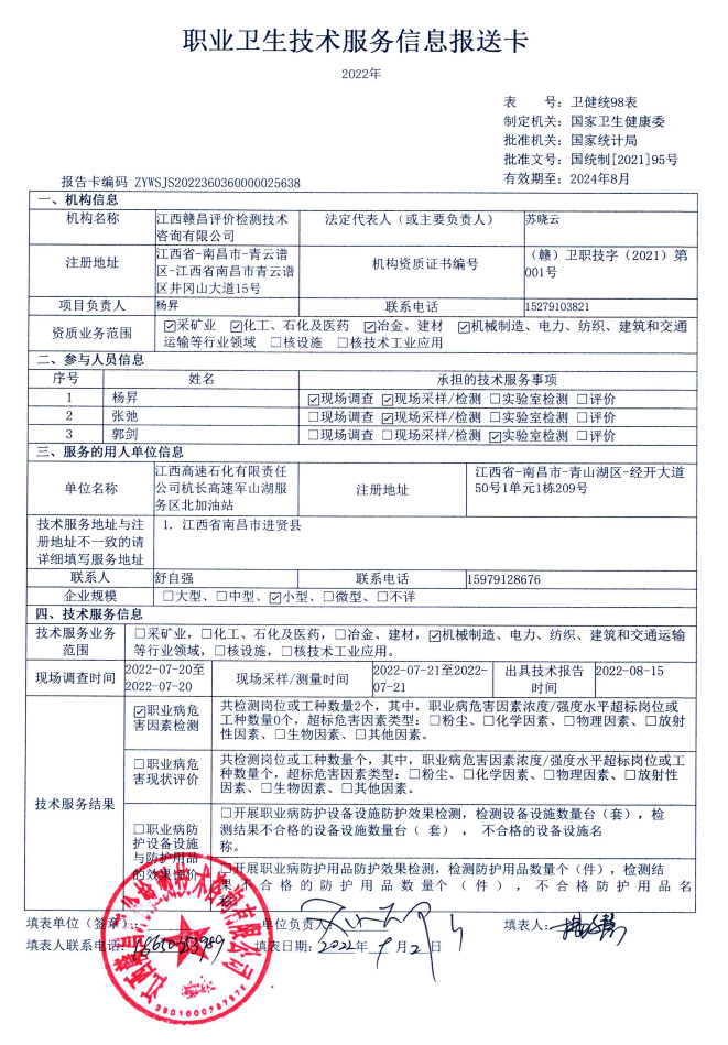 上一篇:江西高速石化有限責(zé)任公司福銀高速臨川西加油站工作場(chǎng)所職業(yè)病危害因素檢測(cè)報(bào)告