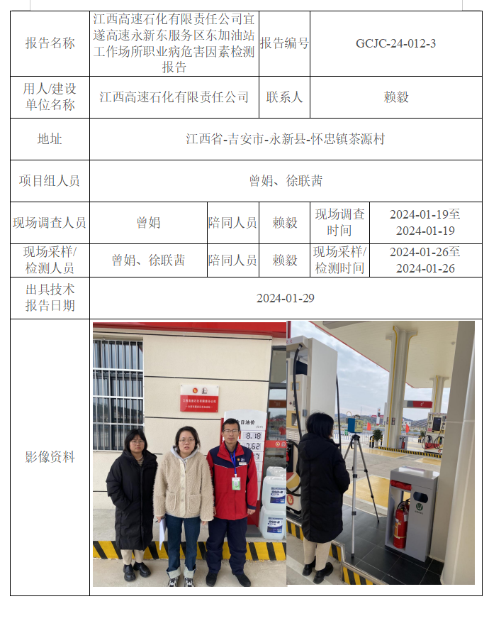 江西高速石化有限責任公司宜遂高速永新東服務區(qū)東加油站工作場所職業(yè)病危害因素檢測報告