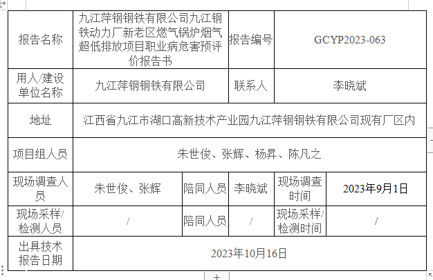 上一篇:九江萍鋼鋼鐵有限公司九江鋼鐵物流運(yùn)輸部新區(qū)皮帶機(jī)輸送系統(tǒng)除塵改造項(xiàng)目 職業(yè)病危害預(yù)評(píng)價(jià)GCYP2024-026