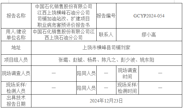 中國(guó)石化銷(xiāo)售股份有限公司 江西上饒橫峰石油分公司 司鋪加油站改、擴(kuò)建項(xiàng)目 職業(yè)病危害預(yù)評(píng)價(jià)報(bào)告書(shū)