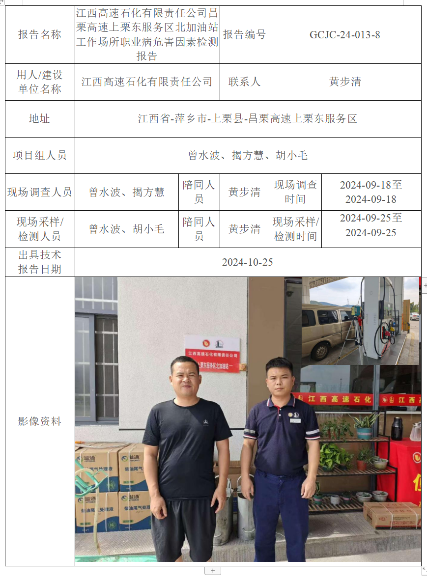 上一篇:江西高速石化有限責(zé)任公司昌栗高速上栗東服務(wù)區(qū)南加油站工作場所職業(yè)病危害因素檢測報(bào)告
