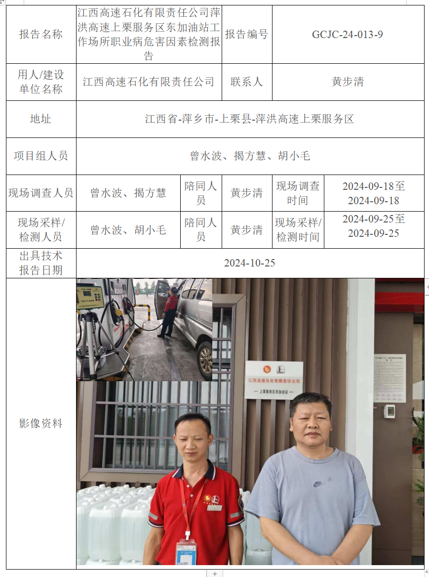 下一篇:江西高速石化有限責(zé)任公司萍洪高速上栗服務(wù)區(qū)西加油站工作場所職業(yè)病危害因素檢測報告