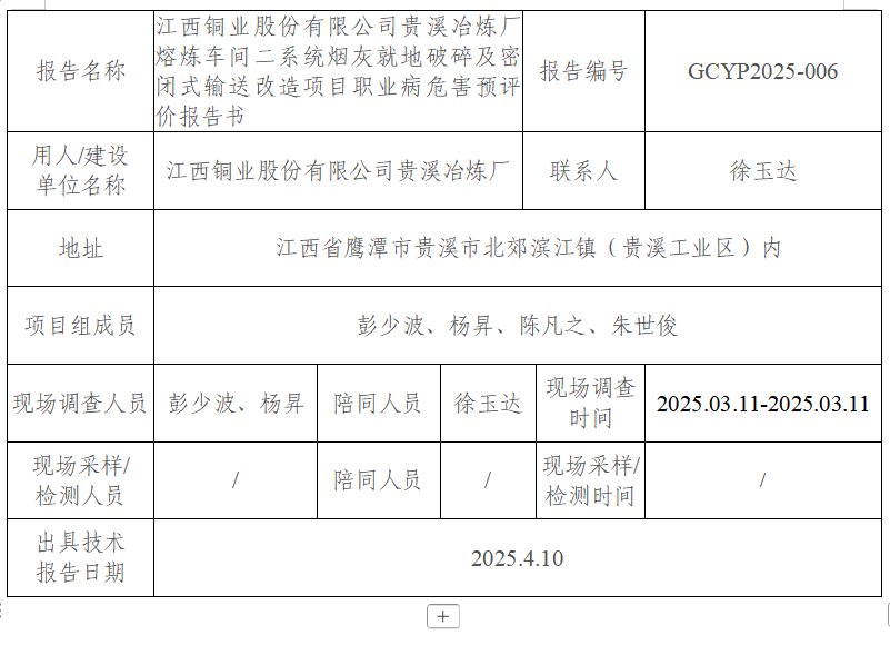 下一篇:江西銅業(yè)股份有限公司貴溪冶煉廠一系統(tǒng)轉爐渣緩冷工藝優(yōu)化改造項目職業(yè)病危害預評價報告書