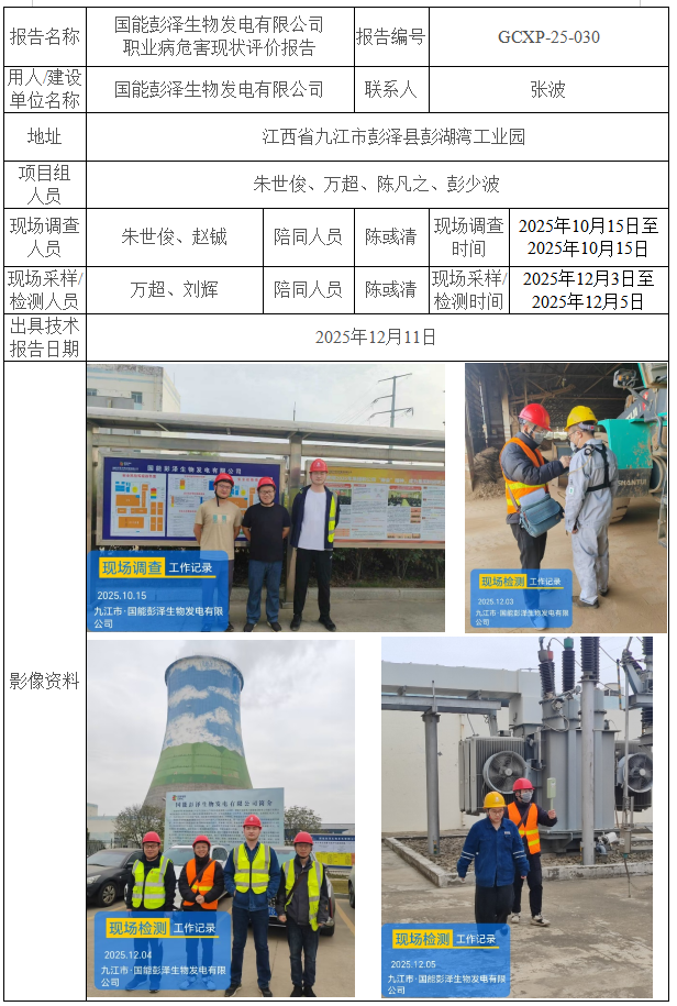 國能彭澤生物發(fā)電有限公司 職業(yè)病危害現(xiàn)狀評價報告