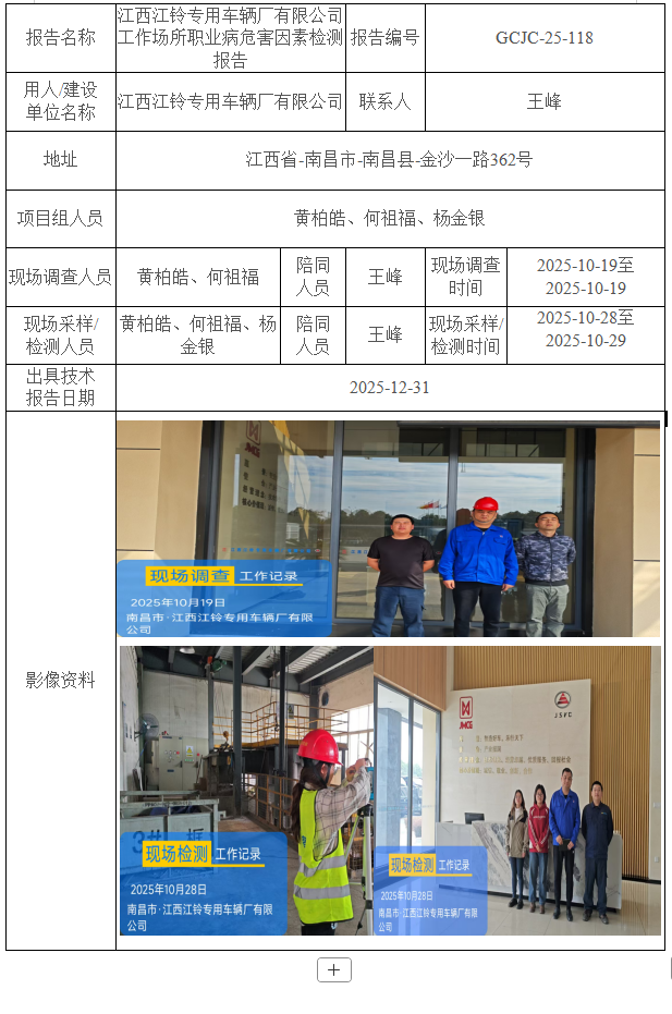 江西江鈴專用車輛廠有限公司工作場所職業(yè)病危害因素檢測報告