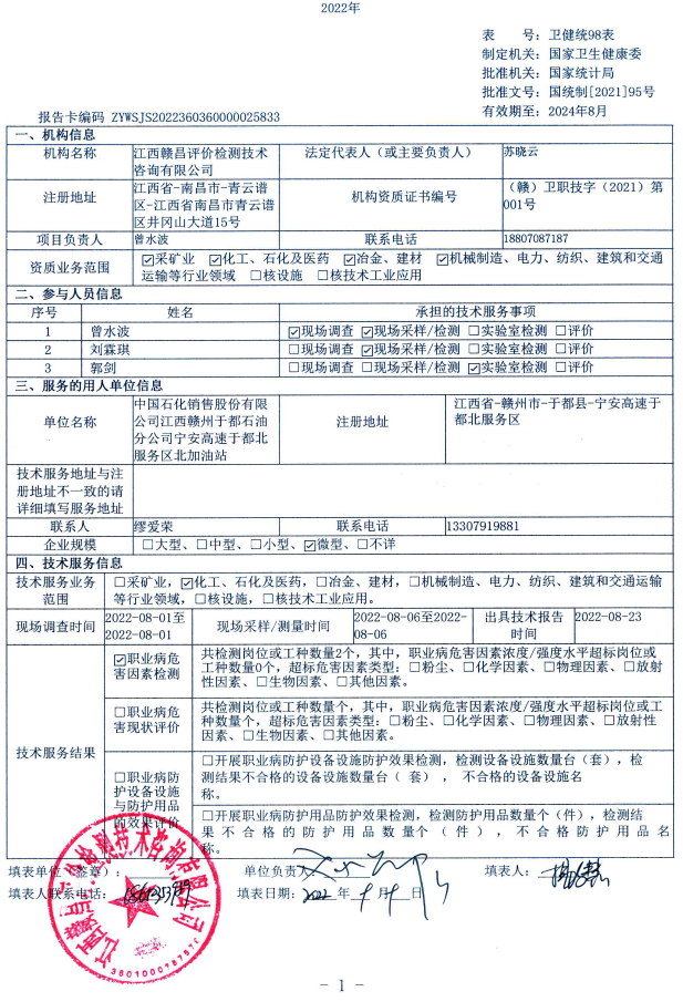 下一篇:江西高速石化有限責(zé)任公司泉南高速興國服務(wù)區(qū)北加油站工作場所職業(yè)病危害因素檢測報(bào)告