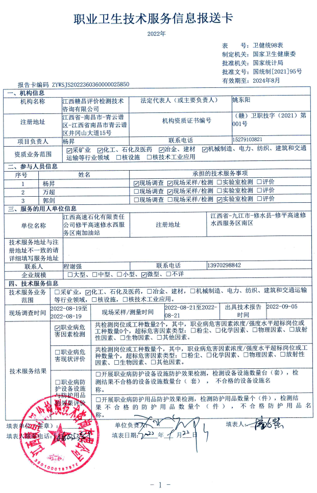 下一篇:江西高速石化有限責(zé)任公司武吉高速宜豐服務(wù)區(qū)東加油站工作場所職業(yè)病危害因素檢測報告