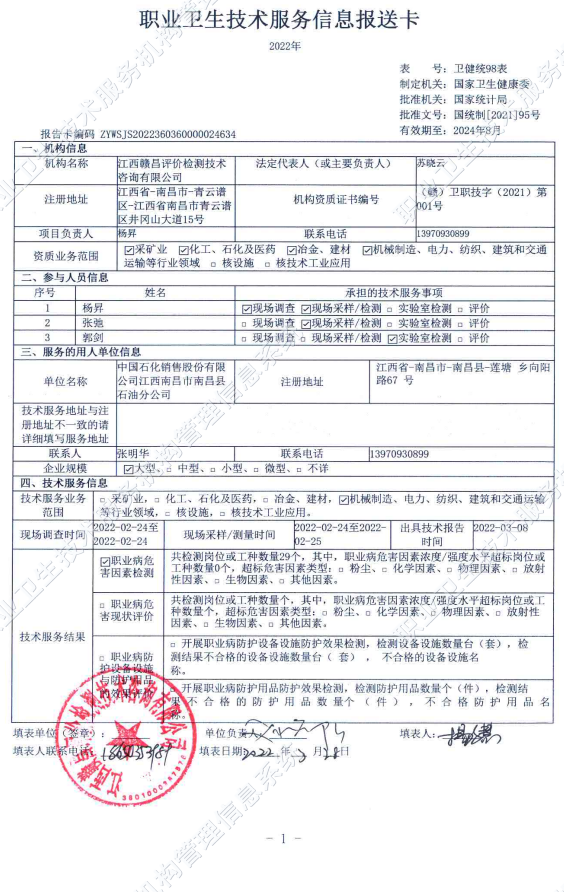 下一篇:江西高速石化有限責(zé)任公司武吉高速修水服務(wù)區(qū)東加油站工作場所職業(yè)病危害因素檢測報(bào)告