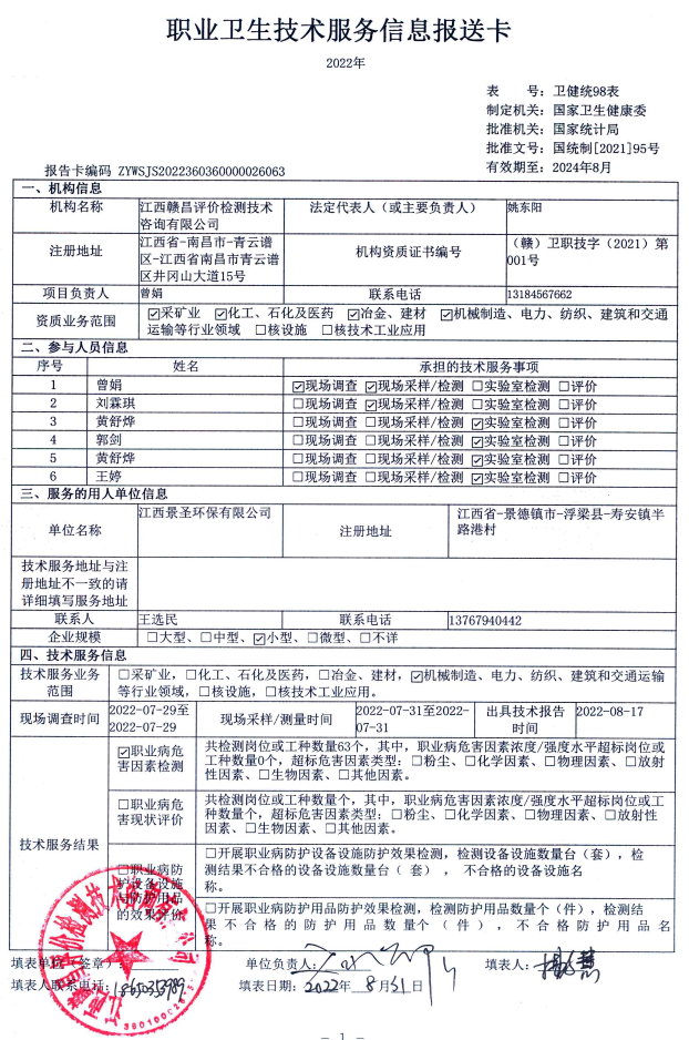 下一篇:江西鈴瑞再生資源開(kāi)發(fā)有限公司工作場(chǎng)所職業(yè)病危害因素檢測(cè)報(bào)告