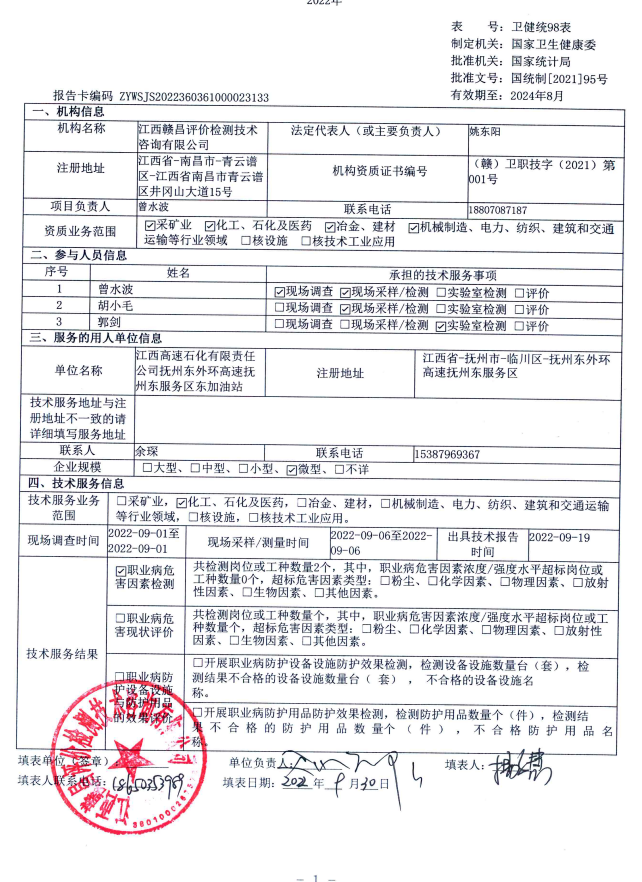 上一篇:江西高速石化有限責任公司撫吉高速臨川東服務(wù)區(qū)南加油站工作場所職業(yè)病危害因素檢測報告