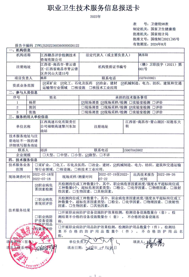 下一篇:江西高速石化有限責(zé)任公司福銀高速黎川西加油站工作場所職業(yè)病危害因素檢測報(bào)告