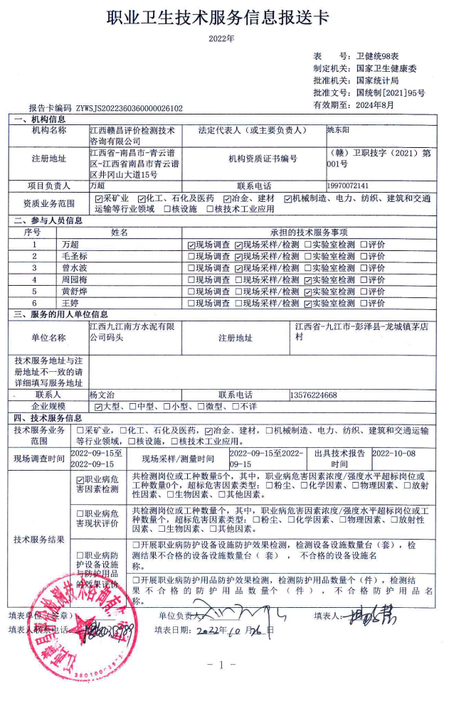 下一篇:江西九江南方水泥有限公司工作場(chǎng)所職業(yè)病危害因素檢測(cè)報(bào)告