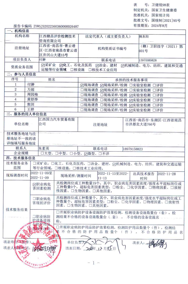 下一篇:江西省修水香爐山鎢業(yè)有限責(zé)任公司工作場所職業(yè)病危害因素檢測報(bào)告
