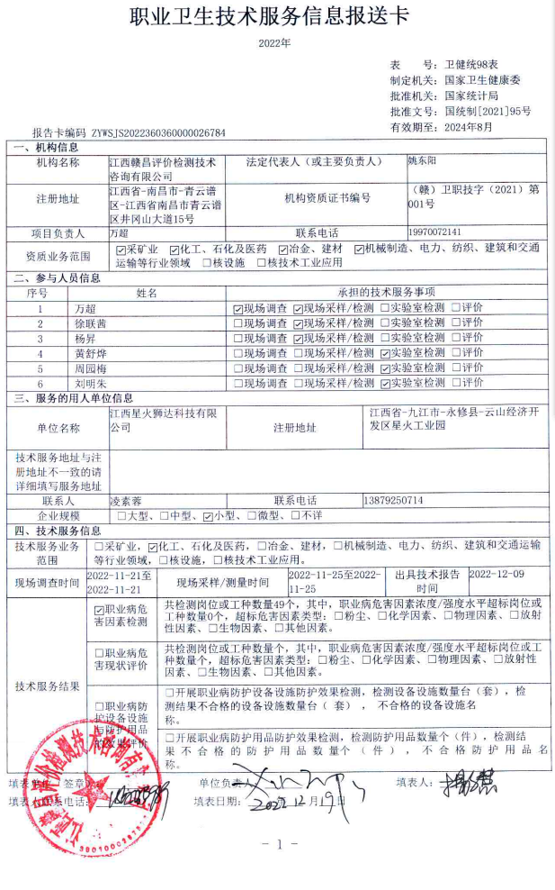 下一篇:江西信達(dá)航科新材料科技有限公司工作場(chǎng)所職業(yè)病危害因素檢測(cè)報(bào)告