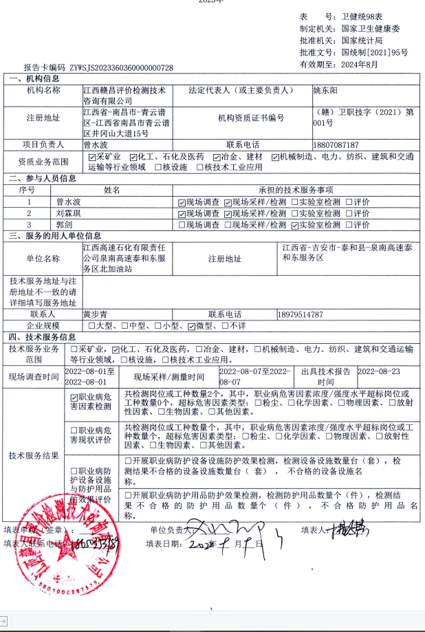 下一篇:江西高速石化有限責(zé)任公司永新服務(wù)區(qū)北加油站工作場所職業(yè)病危害因素檢測報(bào)告