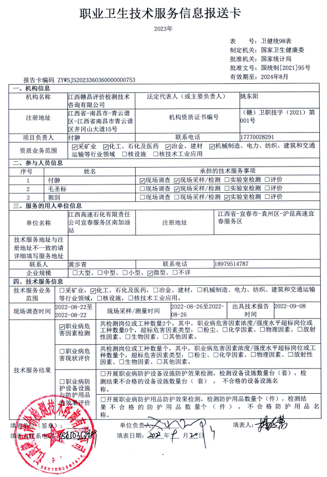 下一篇:江西高速石化有限責任公司武吉高速銀灣橋服務區(qū)東加油站工作場所職業(yè)病危害因素檢測報告