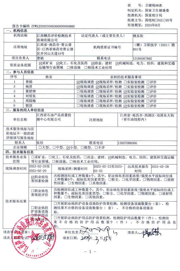 下一篇:江西高速石化有限責(zé)任公司滬昆高速萍鄉(xiāng)服務(wù)區(qū)北加油站工作場(chǎng)所職業(yè)病危害因素檢測(cè)報(bào)告
