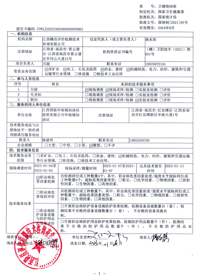 江西國能華南城加油站投資有限公司華南城加油站工作場所職業(yè)病危害因素檢測報(bào)告