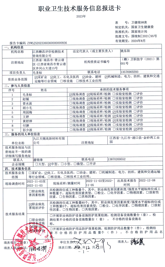 上一篇:江西揚(yáng)帆新材料有限公司工作場(chǎng)所職業(yè)病危害因素檢測(cè)報(bào)告