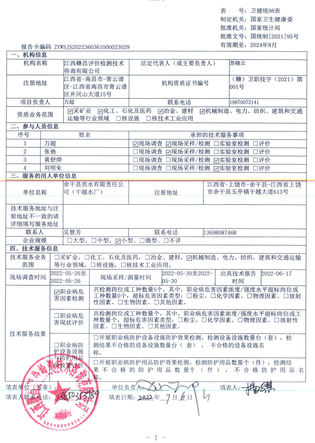 上一篇:余干縣供水有限責(zé)任公司(黃金水廠)工作場所職業(yè)病危害因素檢測報告