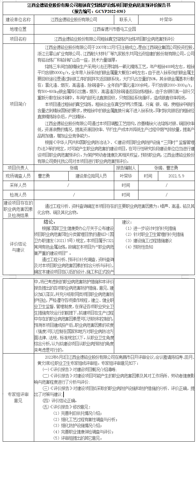 下一篇:江西惠超化工有限公司年產(chǎn)20250噸有機硅系列產(chǎn)品項目(一期)職業(yè)病危害預評價報告書 (報告編號:GCYP2022-031)