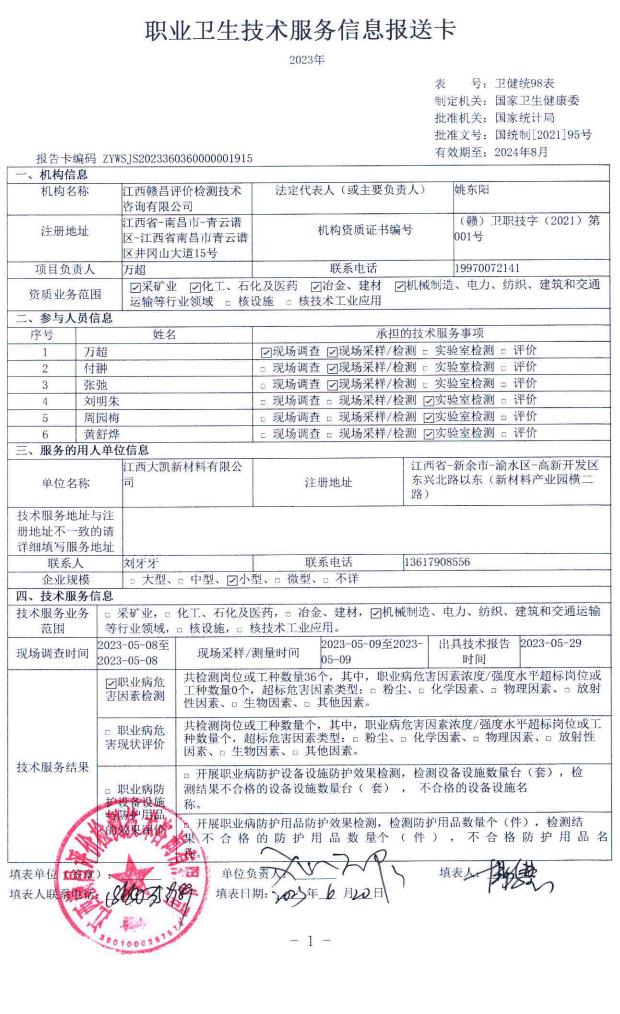 上一篇:宜春贛鋒鋰業(yè)有限公司年產(chǎn)500噸超薄鋰帶及鋰材料項(xiàng)目工作場(chǎng)所職業(yè)病危害因素檢測(cè)報(bào)告
