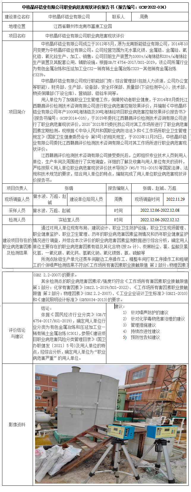 上一篇:江西新余南方建材有限公司職業(yè)病危害現狀評價報告書(報告編號:GCXP2022-032)