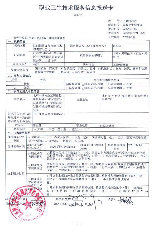 上一篇:江西惠超化工有限公司年產(chǎn)20250噸有機硅系列產(chǎn)品項目(一期)職業(yè)病危害控制效果評價報告 (報告編號:GCKP2023-003)