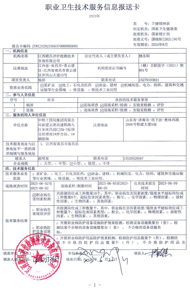上一篇:中鐵十四局集團(tuán)有限公司新建京港高速鐵路九江至南昌段CJZQ-7標(biāo)項(xiàng)目經(jīng)理部辦公區(qū)工作場(chǎng)所職業(yè)病危害因素檢測(cè)報(bào)告