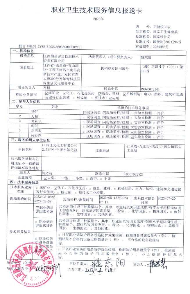 上一篇:江西理文化工有限公司有機(jī)氟化工裝置工作場所職業(yè)病危害因素檢測報(bào)告