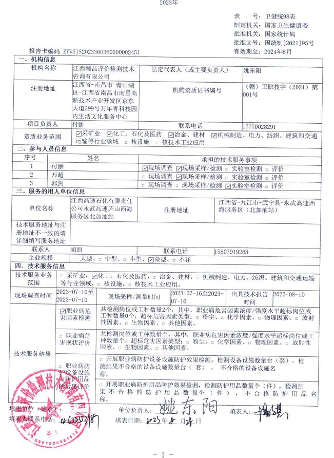 上一篇:江西高速石化有限責任公司東昌高速豐城南服務區(qū)北加油站工作場所職業(yè)病危害因素檢測報告