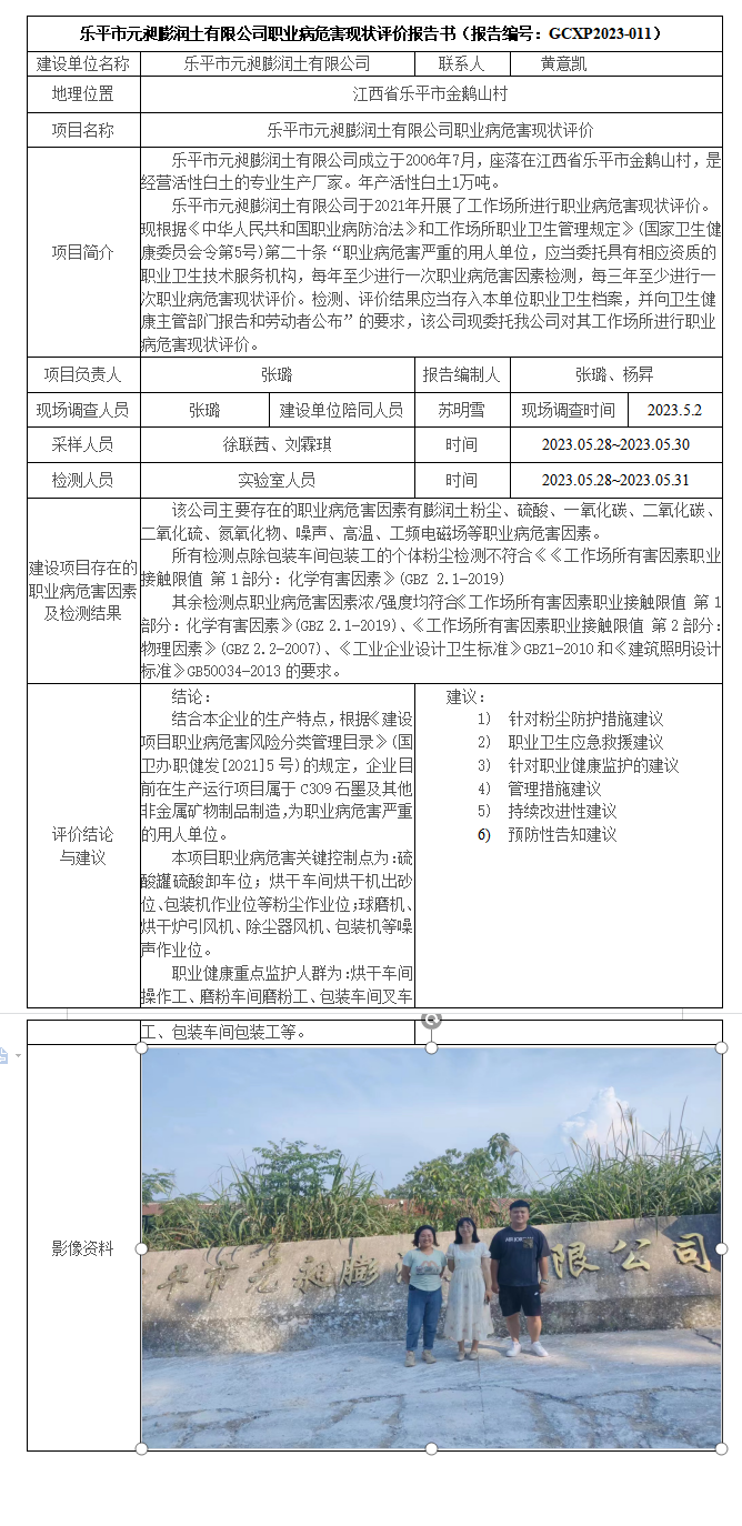 上一篇:江西廬山海螺水泥有限公司職業(yè)病危害現(xiàn)狀評價報告書(報告編號:GCXP2023-007)