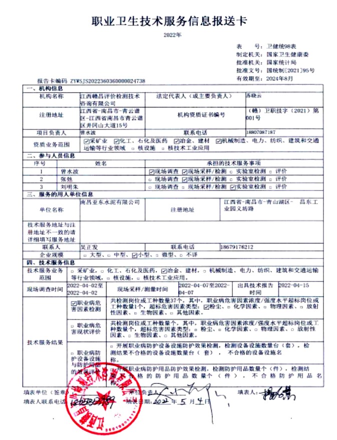 南昌亞東水泥有限公司檢測(cè)報(bào)告