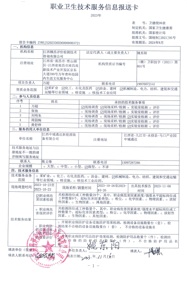 下一篇:新余贛鋒新鋰源電池有限公司贛鋒新鋰源年產(chǎn)1500萬件精密結(jié)構件100套生產(chǎn)設備項目 職業(yè)病危害預評價報告書 (報告編號:GCYP2023-046)