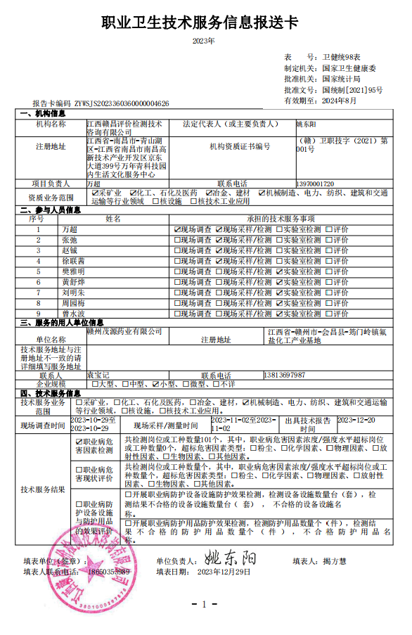 上一篇:江西滸坑鎢業(yè)有限公司廢石綜合利用項目職業(yè)病危害預(yù)評價報告書 (報告編號:GCYP2023-023)
