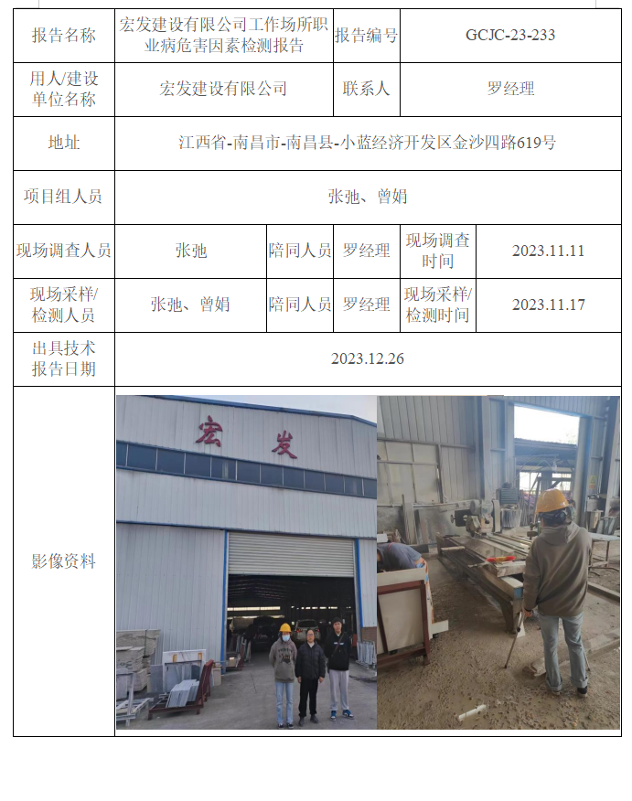 宏發(fā)建設(shè)有限公司工作場所職業(yè)病危害因素檢測報(bào)告