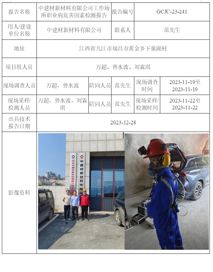 中建材新材料有限公司工作場所職業(yè)病危害因素檢測報告