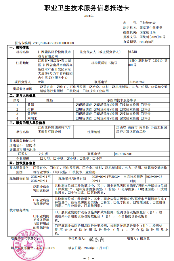下一篇:勝美達(dá)電機(jī)(吉安)有限公司工作場(chǎng)所職業(yè)病危害因素檢測(cè)報(bào)告