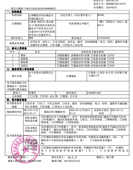 上一篇:余干縣供水有限責(zé)任公司(干越水廠)工作場所職業(yè)病危害因素檢測報告