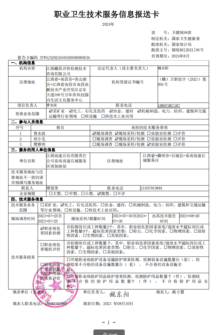 江西高速石化有限責(zé)任公司泉南高速石城服務(wù)區(qū)北加油站