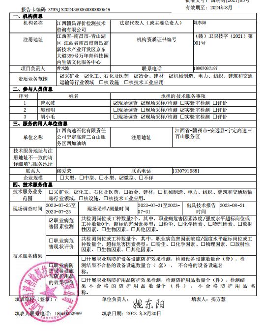 江西高速石化有限責任公司寧定高速三百山服務區(qū)西加油站
