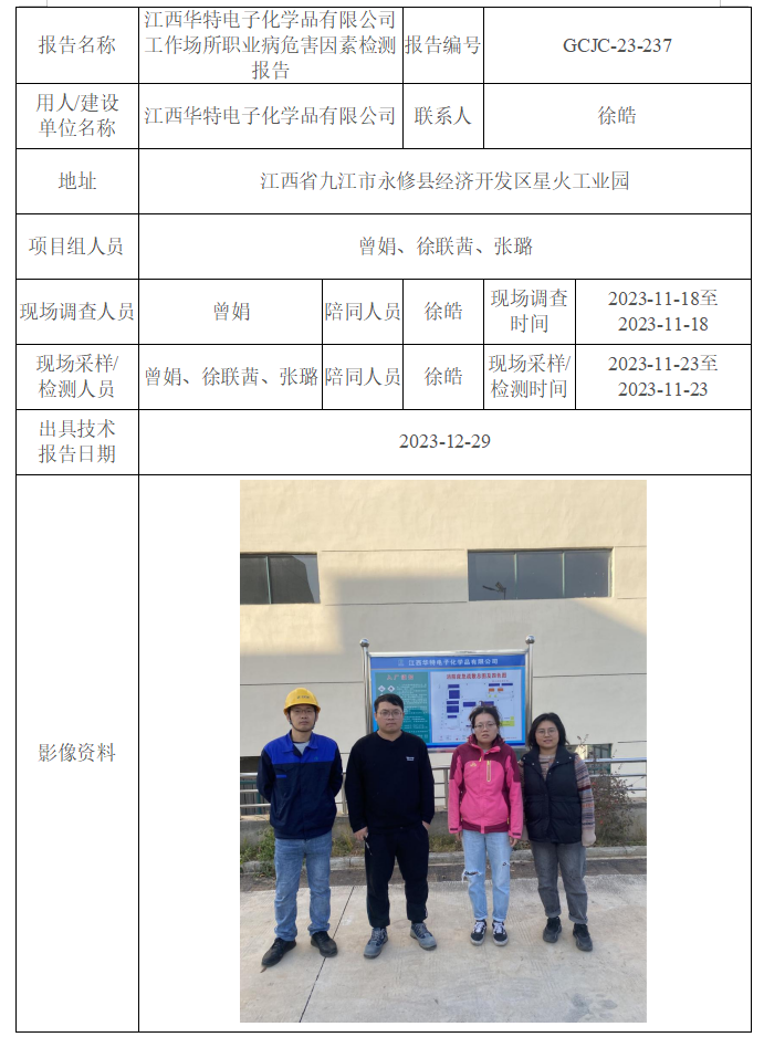 下一篇:江西華特電子化學(xué)品有限公司工作場(chǎng)所職業(yè)病危害因素檢測(cè)報(bào)告