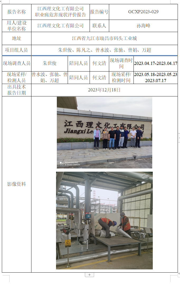 上一篇:江西藍星星火有機硅有限公司 4萬噸/年線環(huán)分離裝置擴能改造項目 職業(yè)病危害控制效果評價報告