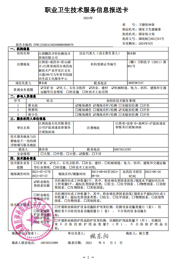下一篇:江西高速石化有限責任公司滬昆高速宜春服務區(qū)北加油站工作場所職業(yè)病危害因素檢測報告