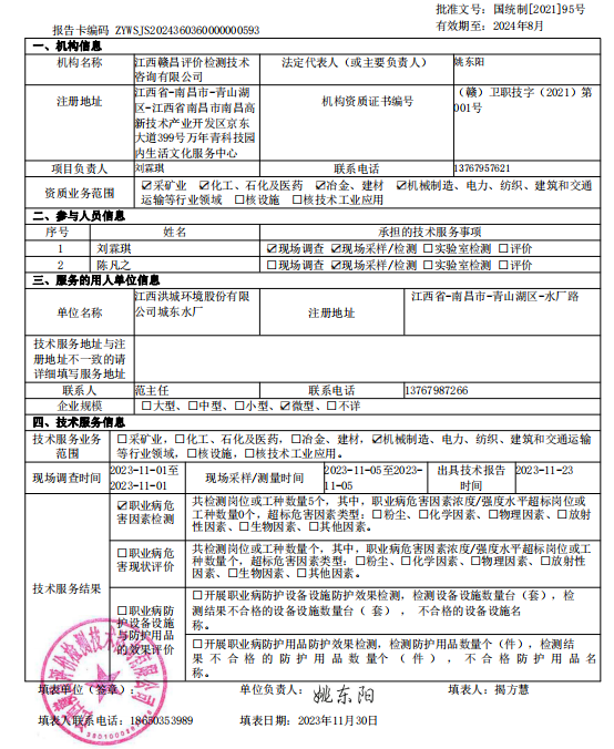 下一篇:《江西金杯贛昌電纜有限公司工作場所職業(yè)病危害因素檢測報告》(報告編號:GCJC-23-216)