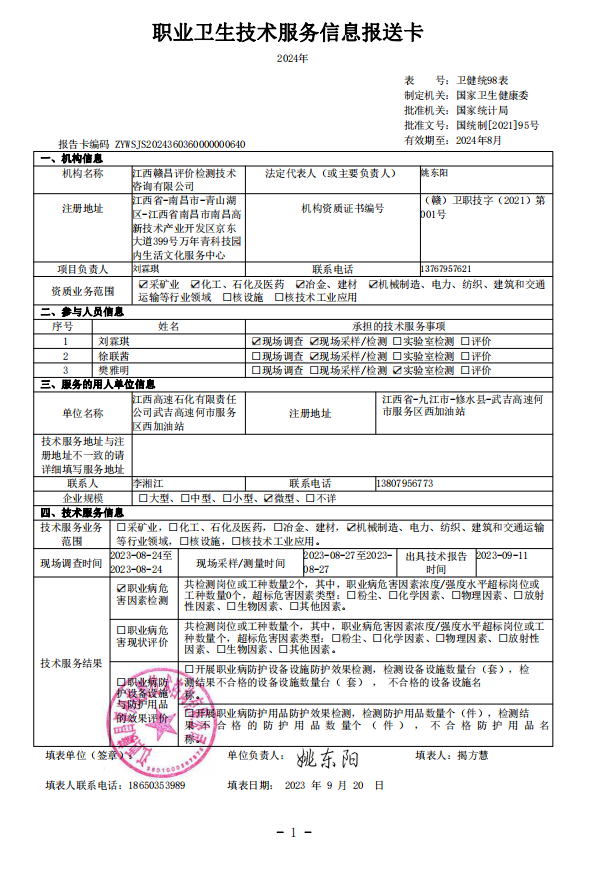 上一篇:《江西高速石化有限責任公司武吉高速何市服務(wù)區(qū)東加油站工作場所職業(yè)病危害因素檢測報告》(報告編號:GCJC-23-144-15)
