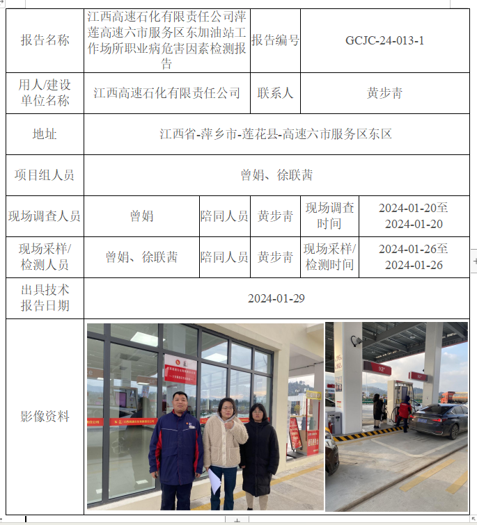 下一篇:江西高速石化有限責(zé)任公司宜遂高速井岡山東服務(wù)區(qū)北加油站工作場(chǎng)所職業(yè)病危害因素檢測(cè)報(bào)告