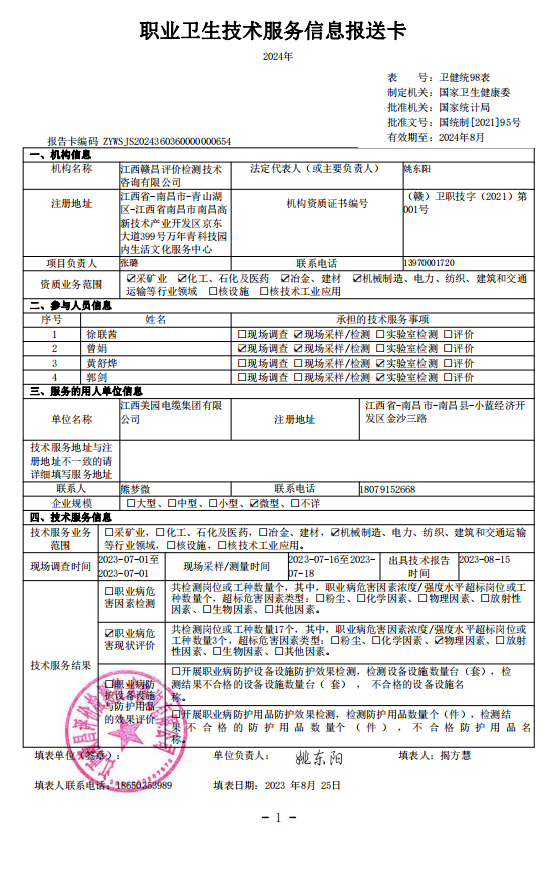上一篇:《江西潤田實業(yè)股份有限公司工作場所職業(yè)病危害因素檢測報告》(報告編號:GCJC-23-079)