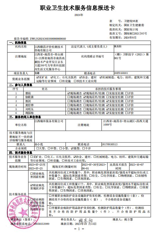 上一篇:《樂(lè)平市元昶膨潤(rùn)土有限公司工作場(chǎng)所職業(yè)病危害因素檢測(cè)報(bào)告》(報(bào)告編號(hào):GCJC-23-082)