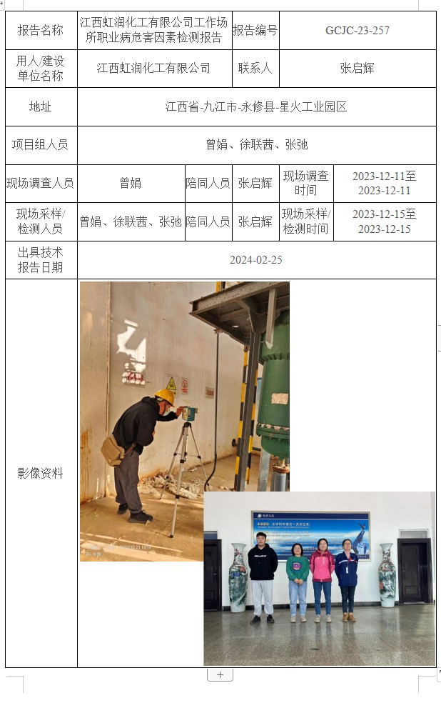 江西虹潤化工有限公司工作場所職業(yè)病危害因素檢測報告GCJC-23-257